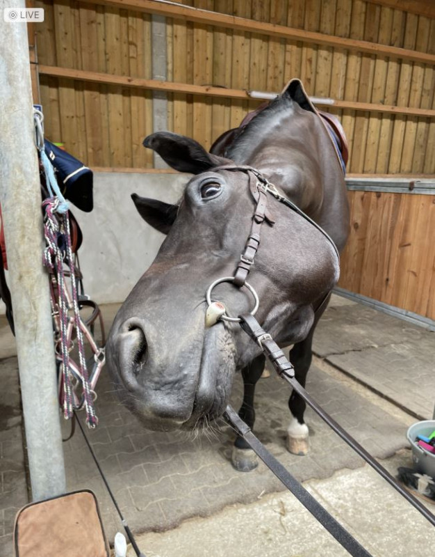 Au retour, Phaphou sous la chaleur, encore une fois il était super. Je lui ai promis une séance sans galop devant sa petite tête de coeur (il a HURLE quand j'ai ouvert le camion pour débarquer son frère). Au final j'ai juste détendu au galop avant de travailler au trot. J'ai répété et alterné épaules et hanches en dedans sur la piste, usé et abusé des demi-parades pour qu'il m'attende en suivant mon dos et me permette la descente de main. Une fois ça en place, j'ai enchaîné quelques appuyers, à gauche toujours un immense bonheur, à droite il a même fait de manière très satisfaisante. Quel petit cœur.