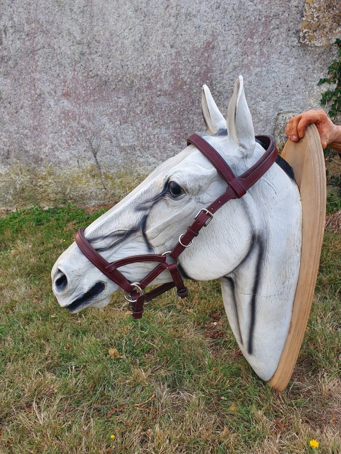 Je vend un side pull en cuir doublé cuir entièrement fait et cousu main avec des option comme l'ajout de montant de mors amovible et une alliance de licol pour fixer une longe.