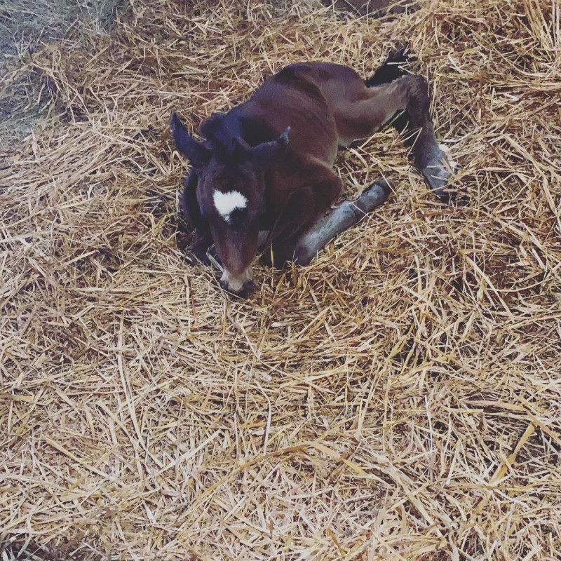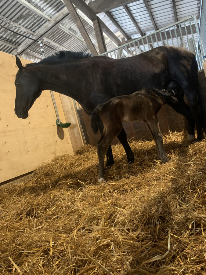 C’est avec beaucoup de joie que je vous présente Zoom de Cœur Mont-choisi petite pouliche qui est née cette nuit sans l’aide de personne. Je me suis levé à 3h et rien du tout et ce matin surprise la petite était là! Tout va bien pour la pouliche. Un poil hyperlaxe des postérieurs mais rien de méchant. La mère est légèrement constipée du coups mash et eau tiède mais pas de crottin mais sa gargouille . On surveille toujours.