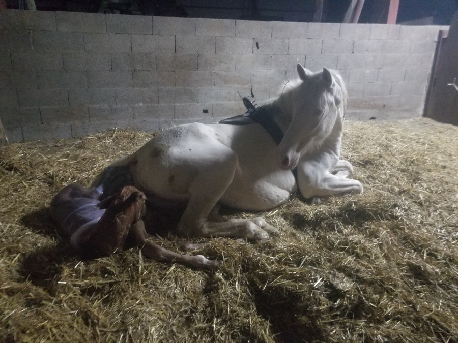 Une grande pouliche est née tôt ce matin, de Luigi d'Amaury et Valerosa du Quercus ( on peut dire très attendue puisque Val n'a eu qu'un poulain à la maison, il y a 3 ans )
