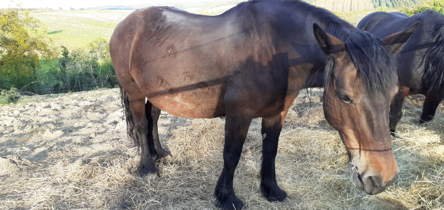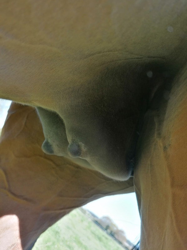 Le poulain doit être tout du coter droit vu la bosse qu'il ya. Jument un peut gêner hier qui metter des coup de pied