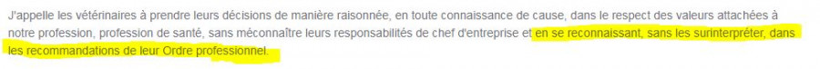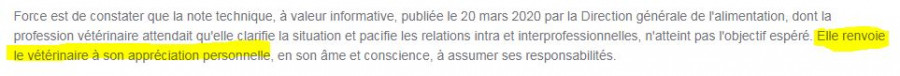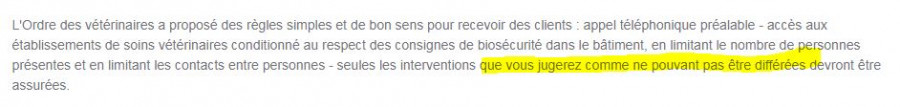 Pour ceux dont les vétos se "cachent" derrière une pseudo interdiction, ceci pourrait peut être les aider, extraits du communiqué du 22 mars du Président du Conseil de l'Ordre :