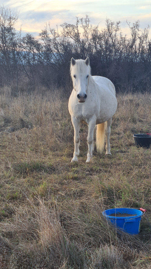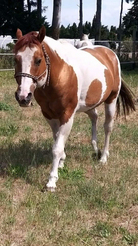 Mon copain a fait saillir sa jument PP Camargue, Kandy, par un l'entier d'un ami.