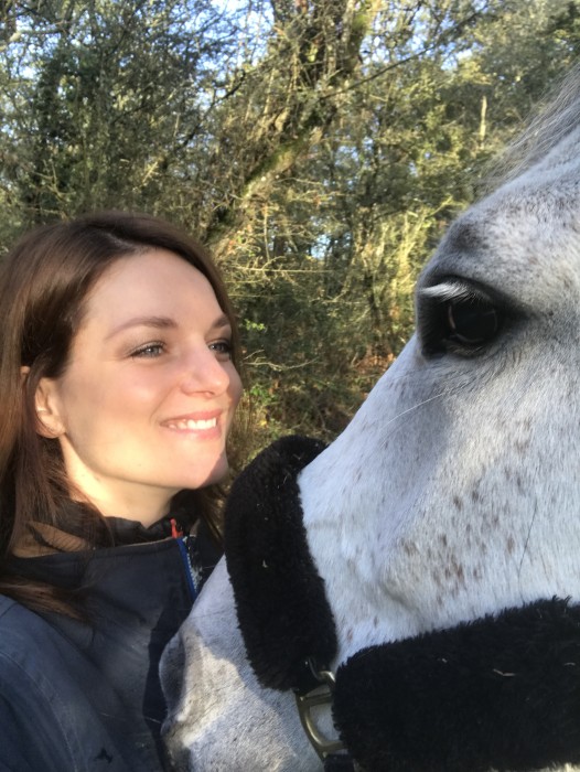 Une fois que c'est un peu redescendu (coeur qui se remet à battre presque normalement, cheval qui a arrêté de ronfler, voir qui fait mine de s'intéresser à un truc genre "je vais brouter/sentir"), là tu renvoies tout doucement, tout délicatement vers l'avant (donc à peine une petite pression des mollets, toute légère).