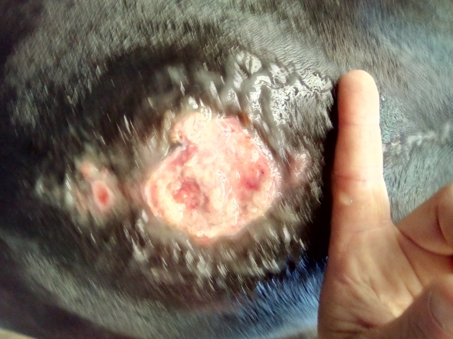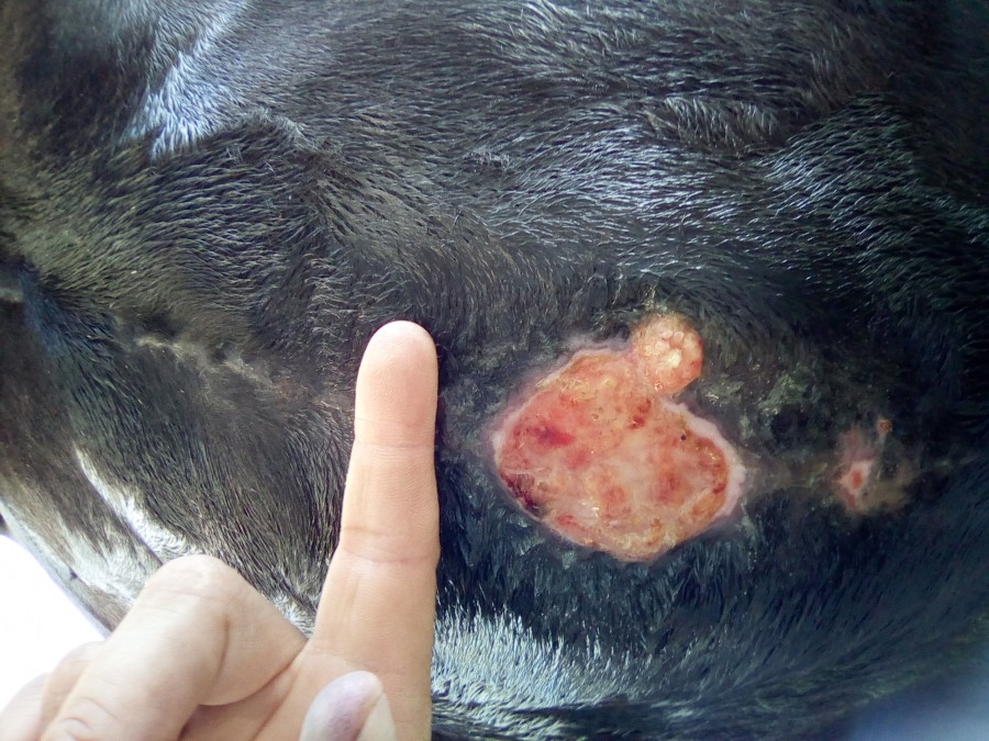 Infection de la plaie du coup plus de bandage compressif.... Et nous voilà parti pour 4 mois de galère . Les points cutanés et sous cutanés ont lâché avec l'infection. Après des soins matin et soir ça y est c'est refermé il faut que les poils repoussent..