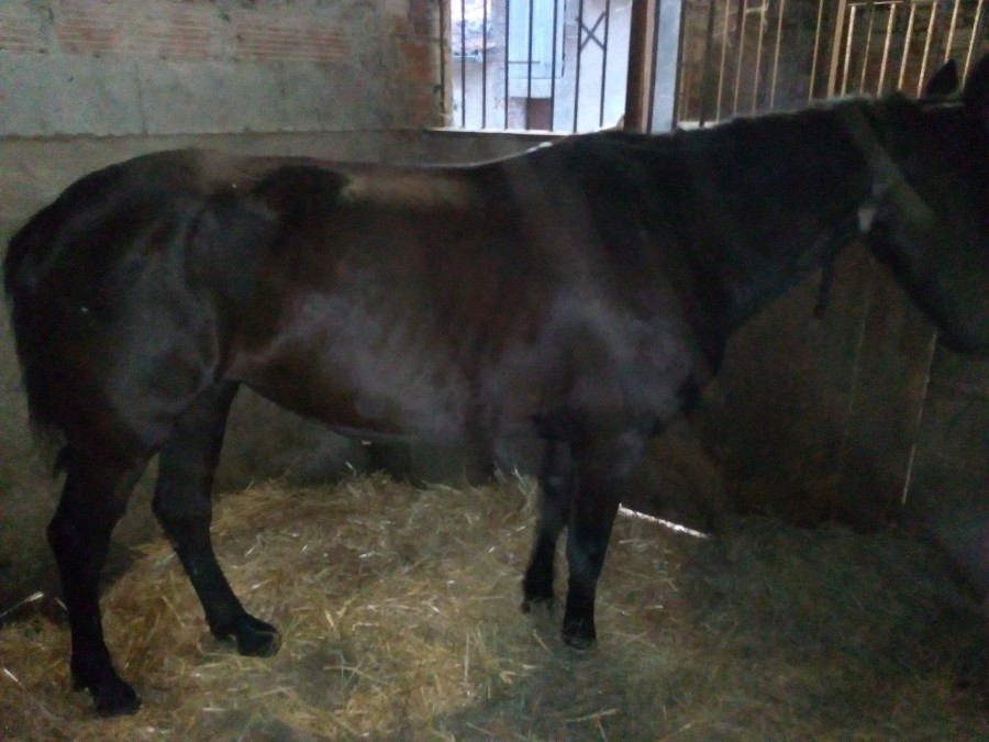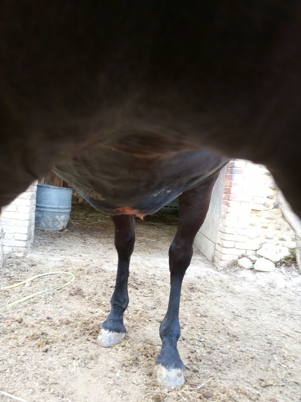 Mais il reste une grosse boule sous le ventre , le troisième véto venu ( un spé cheval !) pense que c'est une grosse hernie et que la Juju 5ne pourra plus ni être montée ni faire un poulain .... Duduche est en bel état, mange normalement ( pas de régime particulier imposé par la clinique véto sauf la première semaine avec foin à volonté et Mash puis grain trempé) , nous sommes passés au paddock 3x3 ( la taille de son boxe mais dehors) rapidement car on a eu un problème d'agressivité... La elle est dans le jardin 1000m2 avec un vieux copain la journée .