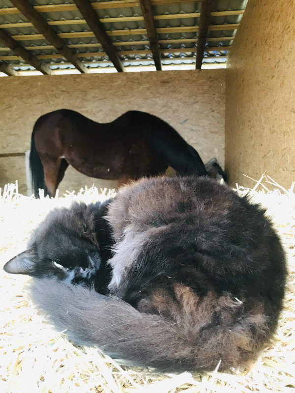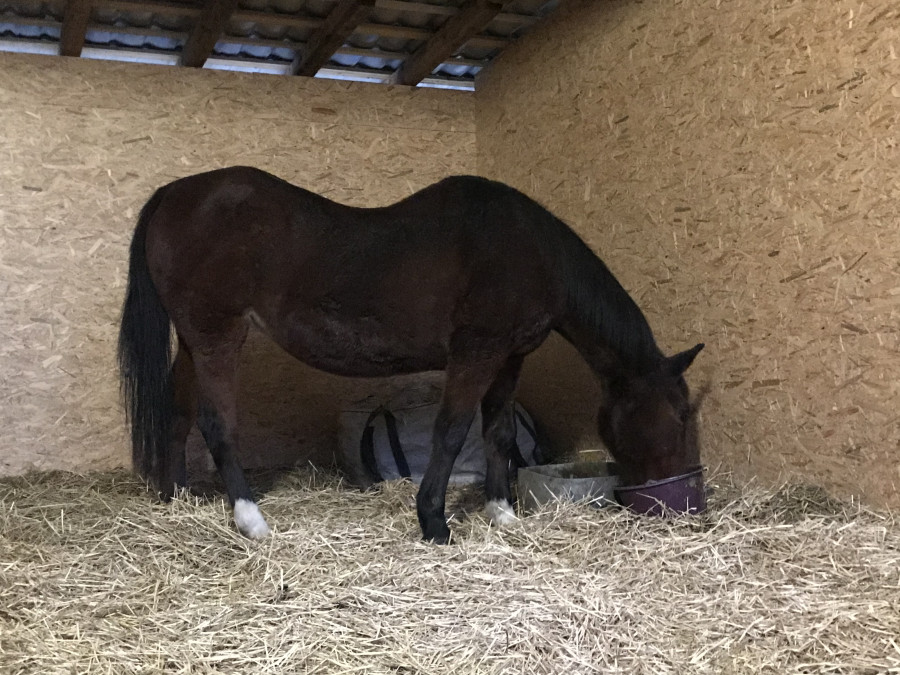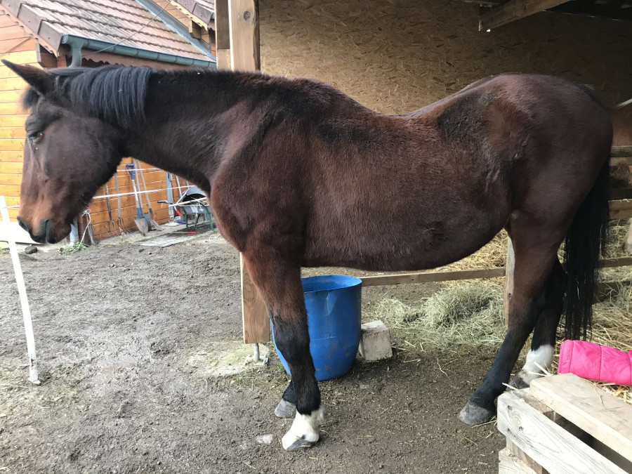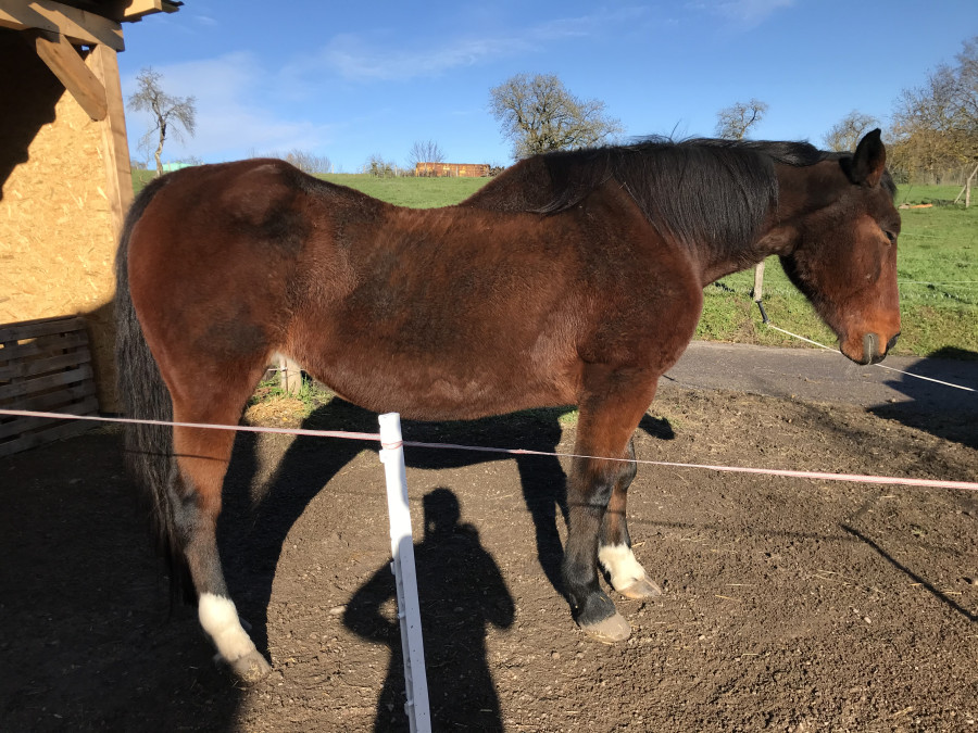 ). L'hiver 2021, on avait couvert car perte de poids entre Octobre et Janvier. En Janvier, alors qu'il gelait + neige, on a dû retiré la couverture, parce qu'elle suait légèrement dessous. Elle avait repris son gras, retrouvé une PDS nickelle donc forcément, elle faisait de la chaleur. Et là, c'est cet été qu'elle a fondu ++ à cause de la chaleur, de l'herbe sèche et évidemment, elle boudait le foin