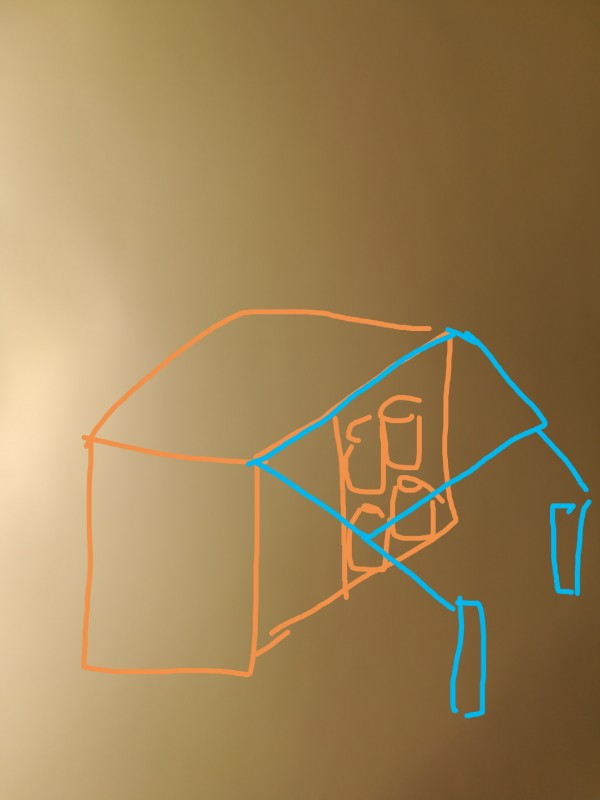 Troisième option que je n'avais pas évoqué plus haut, plaquer une bâche (ou un parement bois) pour fermer une partie de l'abri devant et donc que l'abri soit partiellement fermé sur trois cotés.