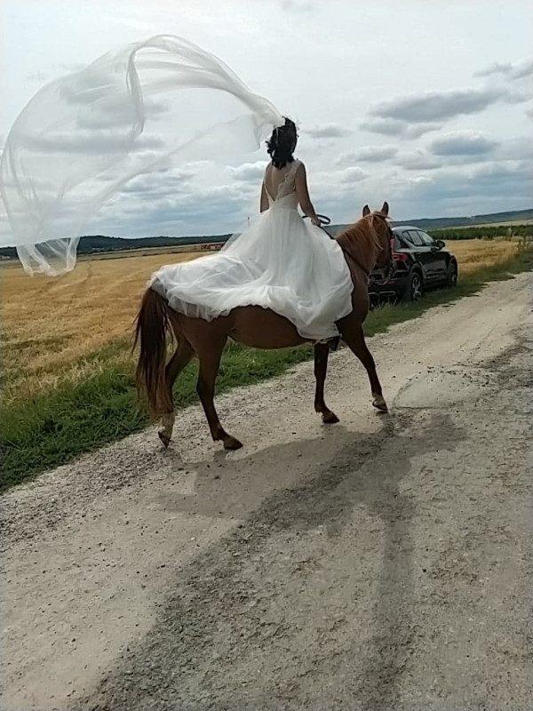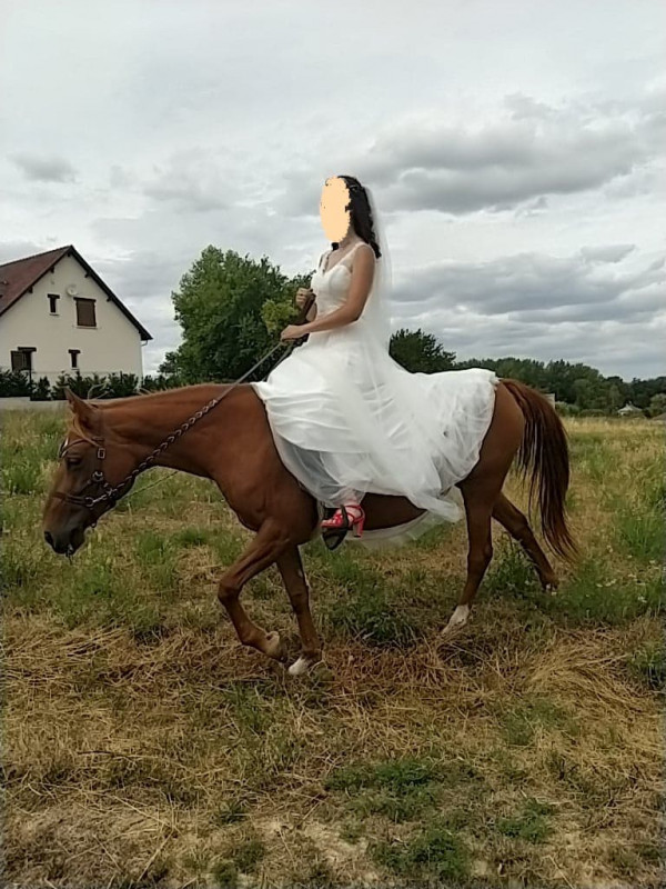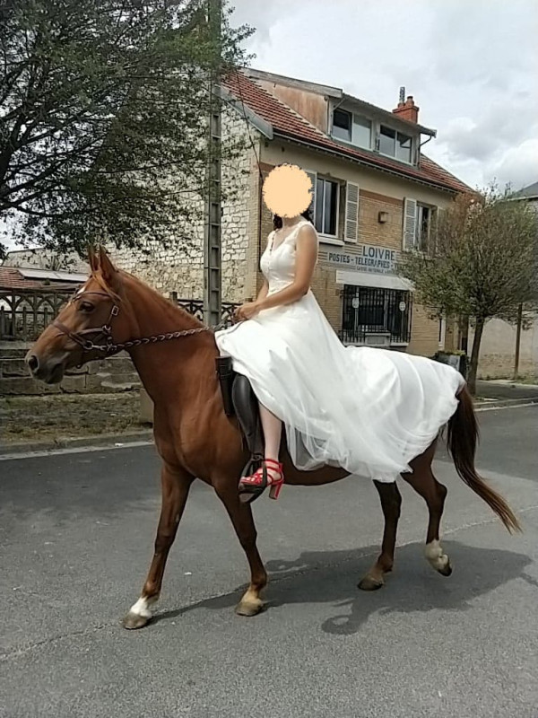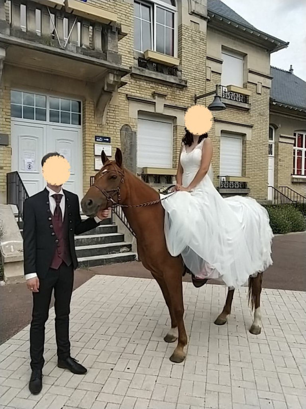 J'aurais voulu votre avis et vos idées car en juillet prochain je vais me marier, et puisque je suis propriétaire de ma jument depuis quelques temps (enfin !) je vais pouvoir réaliser mon rêve de petite fille et arriver à cheval à mon mariage...