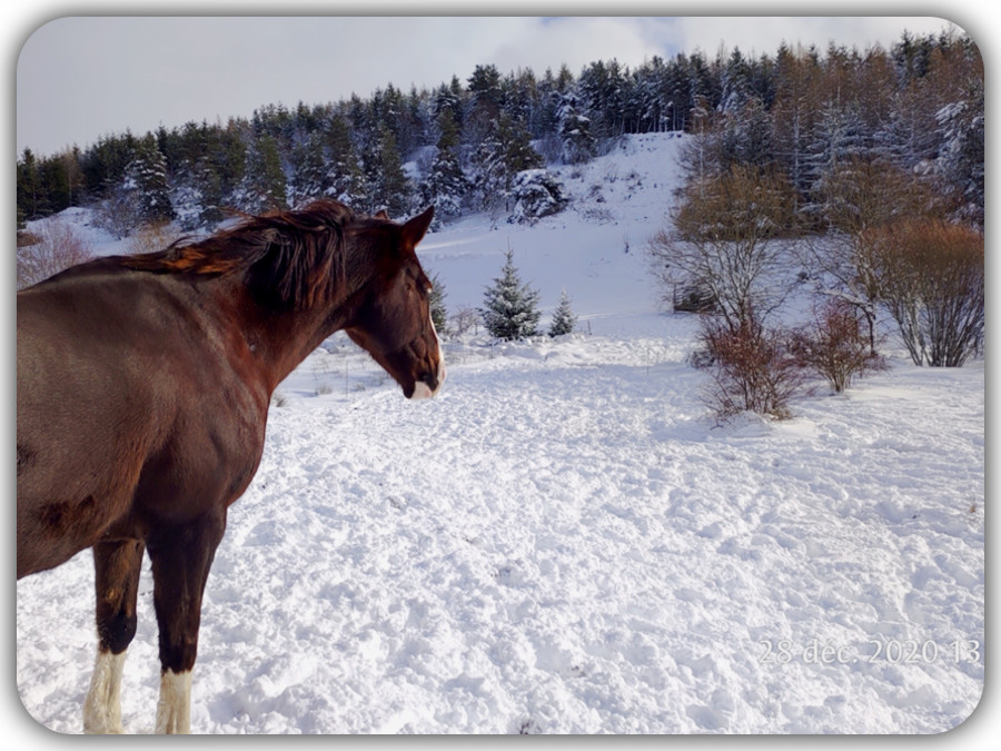 Elle est actuellement en cours de pré-débourrage. Elle sera peut être présentée à l’étalon pour la première fois au printemps prochain si sa croissance le permet. Nous verrons ça le moment venu avec l’ostéopathe.