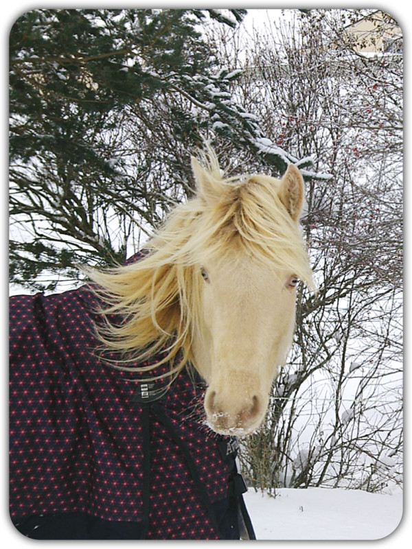 Puis, Iserys de la Lyre est arrivée le 13 février 2019. Elle est née en 2018 et est de robe crème pearl sur base baie. C’est une pouliche OC aux origines ibériques avec 25% de sang frison. Elle a une magnifique petite tête expressive et des crins à ne plus savoir qu’en faire! C’est un petit clown, hyper pot de colle et facile, une vraie crème.