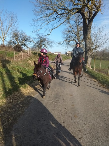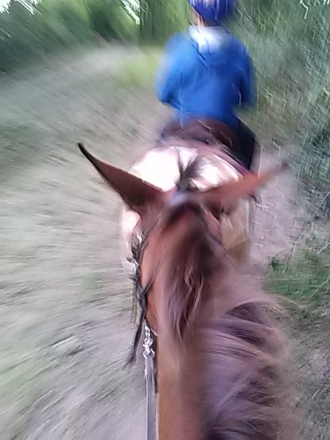 on avait fait montoir et semaine apres balade 35min en licol selle, pas de frein ni direction mai on s'en fout s etait tout droit et 1er devant tout le long tellement il aime ca