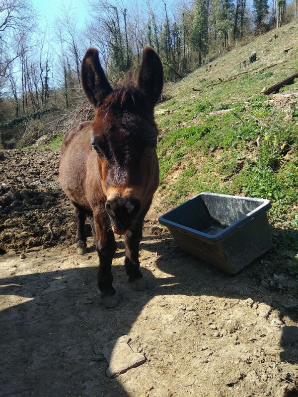 Et je vous ai pas raconté mon voisin agriculteur: celui que je croise à chaque fois dans son 4x4: comme il arrivait vite (ce chemin c'est une autoroute pour lui) et bien j'ai sauté du dos de mon mulet en mode précipité , il s'est arrêté pour discuter en nous disant: et bien il est méchant (?) Et nerveux celui là! Ça fait longtemps que tu l'as? Alors je lui dit: ça fait presque un an mais il est assez sauvage. Et il me répond: ah oui ça se voit à ses oreilles!?