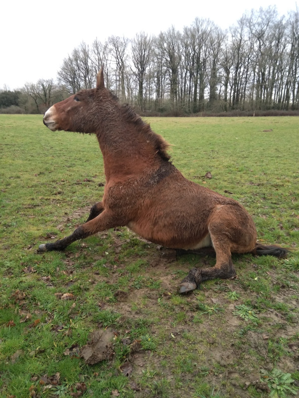 Quand t'es morose car ça fait des jours qu'il pleut et que tout est détrempé/inondé , et bien mon mulet arrive toujours a faire le pitre! Aujourd'hui c'était des postures improbables !