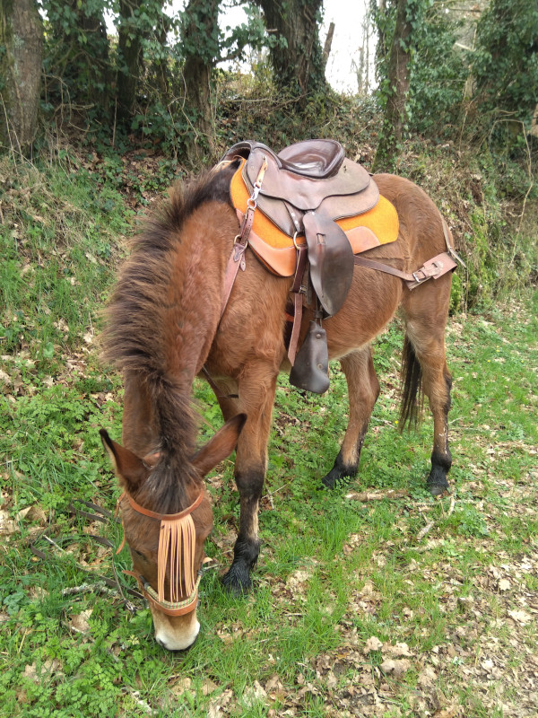 J'ai peu de temps en ce moment entre les naissances de cailleteaux, le boulot et les commandes en cuir. Le mulet s'ennuie un peu, même si je le mets le plus souvent possible avec son pote....