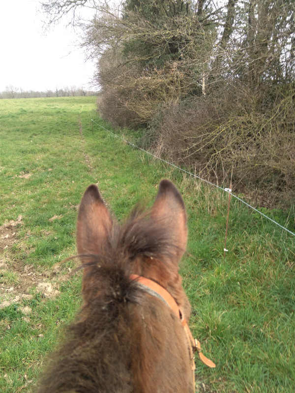 Aujourd'hui comme je vais mieux et que ça me manquait, je suis partie en tête à tête avec mon mulet (et ma plus jeune chienne). 1h30 de balade, surtout au pas, un peu de trot et un peu a pied dans un village où il y avait trop de chiens!