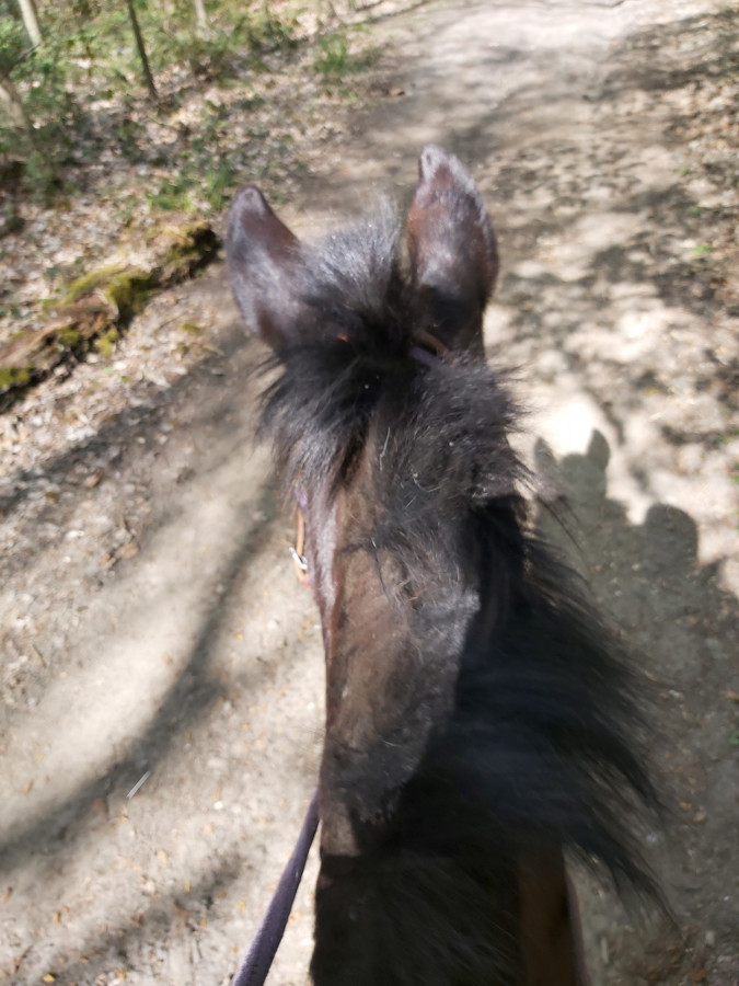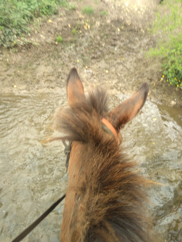 Par contre, j'ai dû mettre pied à terre 2 ou 3 fois car il ne voulait pas aller dans la direction de mon choix, et sur la fin j'ai même cédé pour ne pas rentrer trop tard, je sens que je vais le payer les prochaines balades