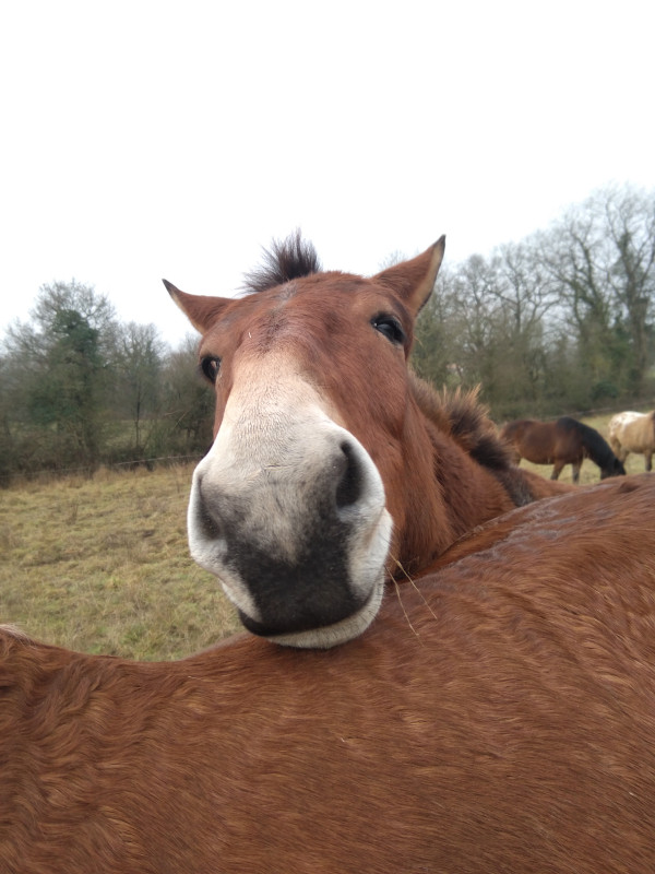 Je vais me remettre à le sortir seul vu que depuis longtemps il n'est sorti qu'en groupe. Il est très sympathique à monter mais pas toujours adroit. Il n'a pas du tout le pied sûr ! J'ai remarqué qu'il glisse très facilement quand le chemin est humide ou boueux (et pas les chevaux) , ça vient peut être du fait qu'il a de tout petits pieds?
