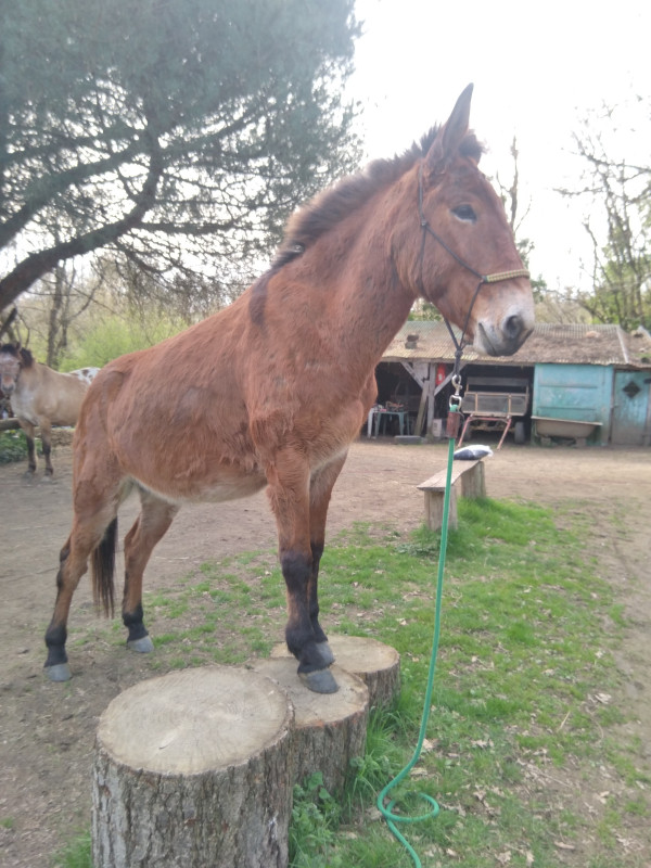 Dimanche j'ai monté mon mulet , sortie d'1h aux 3 allures tranquillou. On a même croisé des chevaux et il n'a rien dit (car en général il veut les suivre!)