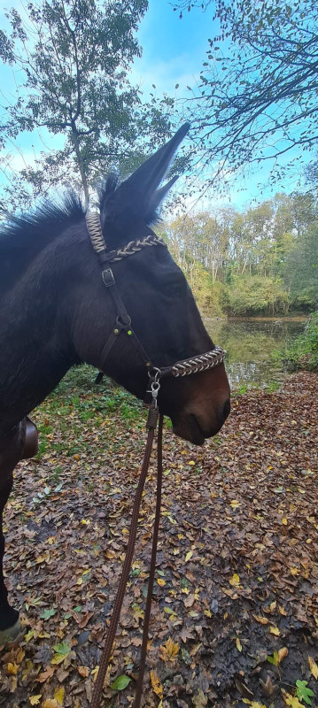 Pour la petite présentation : j'ai mon poney depuis octobre 2019. Il était en pension club là où mes enfants montaient mais comme il a compris qu'il pouvait sortir des prés où les fils n'étaient pas électrifiés, il s'est retrouvé au boxe malheureux comme les pierres. Du coup, nous avons chercher à acheter un terrain et trouvé une vieille grange (que l'on va restaurer pour y habiter à terme) avec 5000m2 de terrain. Je sais c'est pas assez mais c'est toujours mieux qu'un boxe de 10m2. Bref. Comme je ne voulais pas qu'il soit seul, j'ai longuement réfléchi pour le choix du compagnon. Il est bien évident qu'avec ma surface je ne pouvais pas prendre un percheron 😁. Je voulais prendre un shet car je suis super fane et je voulais me mettre à l'attelage. Mais mes fils aîné pratiquaient le cso et mon aîné devenait trop grand pour mon poney. Du coup m'est apparue l'idée complètement farfelue de trouver un mulet ou une mule bébé pour l'éduquer de A à Z. Ainsi elle serait débourré à la monte pour participer à des épreuves club cso (si si j'ai même contacté la ffe pour vérifier si c'était bon) et quand mes enfants ne montraient plus, je l'aurais fait débourrer par un pro à l'attelage.
