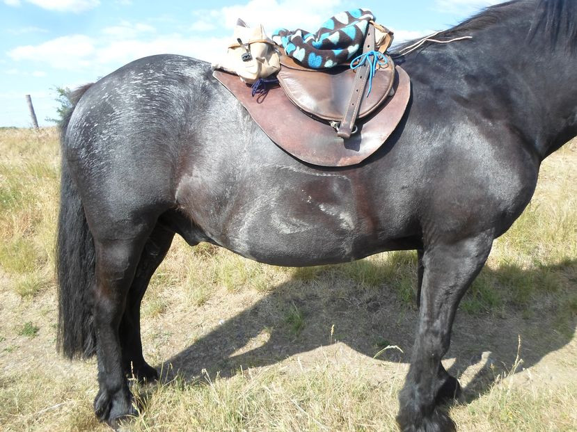 + 10,23 km hier, cheval plein de sel avant de partir, complètement encroûté en arrivant : je vais faire venir le véto, il boude sa ration... N'a pas voulu brouter les bonnes herbes vertes en balade...
