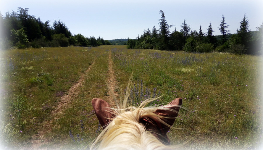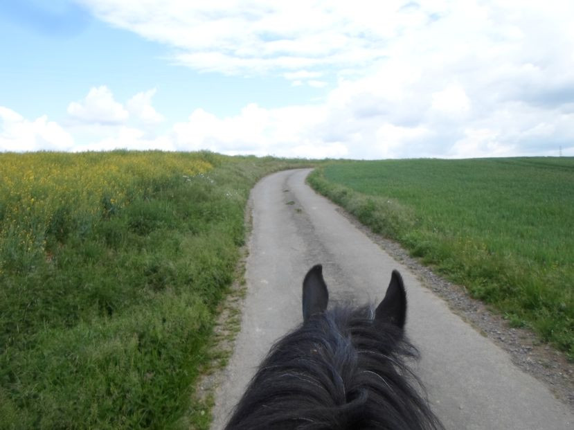 au retour je vois un crottin, je pensais pas que c'était lui qui l'avait fait, en fait on suivait de loin 2 autres cavalières !