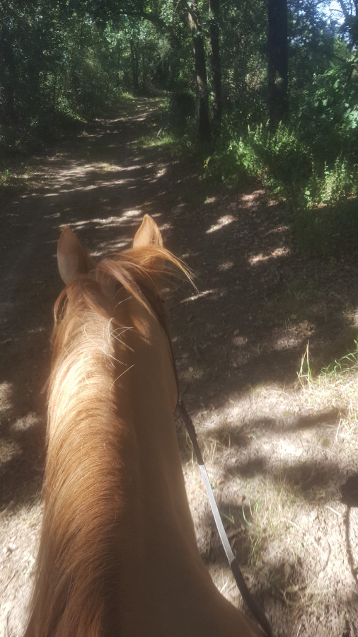 Une bonne balade , une jument contente de prendre des nouveaux chemins.