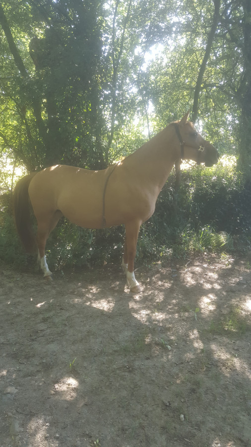 + 4,5 km aujourd'hui... à cheval, aux trois allures, en tête sur mon poulain de 4 ans, 3 semaines de débourrage derrière lui