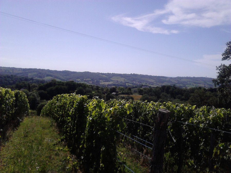 J'ai laissé Glinski choisir là ou il voulait aller pour une fois, arriver en haut du chemin il a pris a droite (on ne part jamais de ce côté car les chemins de balades sont plutôt côté gauche, parfois on reviens par la sur une boucle mais partir on le fait jamais). Je l'ai donc laissé faire, je pense qu'il avait envie de nouveaux chemins et j'avoue que moi aussi. On a fait quasi que du goudron mais il été content, on a eu une belle vue sur le paysages malgré la brume sur les Pyrénées et on a découvert un chemin le long de vignes mais ça nous a menait a un endroit ou il y avait un panneau : Propriété privée défense d'entrée animaux en liberté, en effet il y avait des clôtures en grillage mais pas vu d'animaux, de toute façon vu les panneaux on a fait demi-tour. Puis Glinski a voulu rentrer du coup, on a fait le tour d'une maison visiblement abandonnée à côté des vignes puis on est rentré, on aurait pu continuer la route et retrouver le chemin pour revenir par les crêtes mais ça aurait été plus long... Je le ferais une autre fois peut être,... Sur le retour on a trouvé un monsieur qui marchait il arrivait d'une route perpendiculaire et marchait devant nous, puis on est arrivé a sa hauteur et Glinski s'est calé sur son rythme, du coup nous avons papoté un moment jusqu’à ce que j'arrive a mon chemin et lui continue. A priori il viens assez souvent s’entraîner pour des trail dans le coin et sur les crêtes, peut être qu'on le recroisera. En tout cas c'était bien sympas cette petite balade :)
