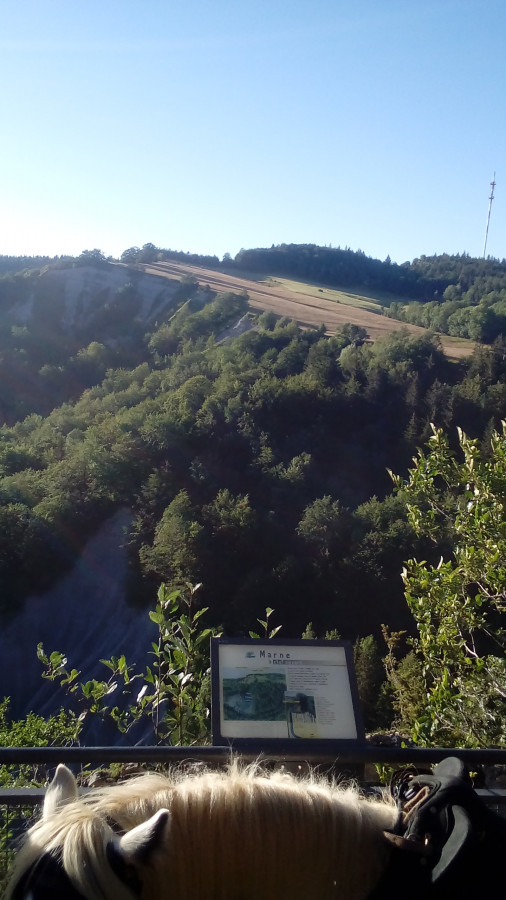 Ensuite tout le reste de la balade il a laissé tomber mais grinçait des dents en regardant des touffes appétissantes. Mais ses épaules matelassées dépassant des quartiers de la selle, son chignon assez dur et les 3 gros crottins en 2H... m'ont fait tenir bon ! Panier Power !!!