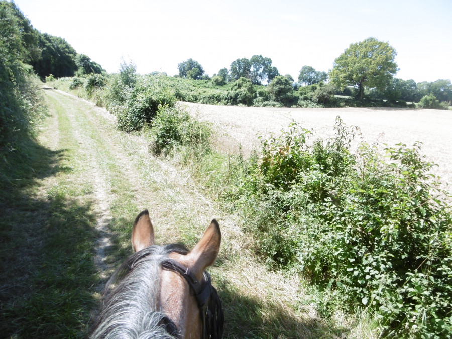 3/4 de balade au top, les chevaux étaient contents, la météo au top avec du soleil mais un petit vent frais qui va bien. Paysage superbe : plein de fleurs partout, un chevreuil pas farouche... Le BONHEUR !