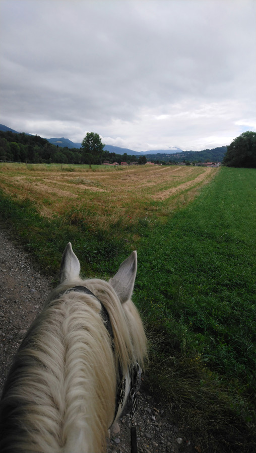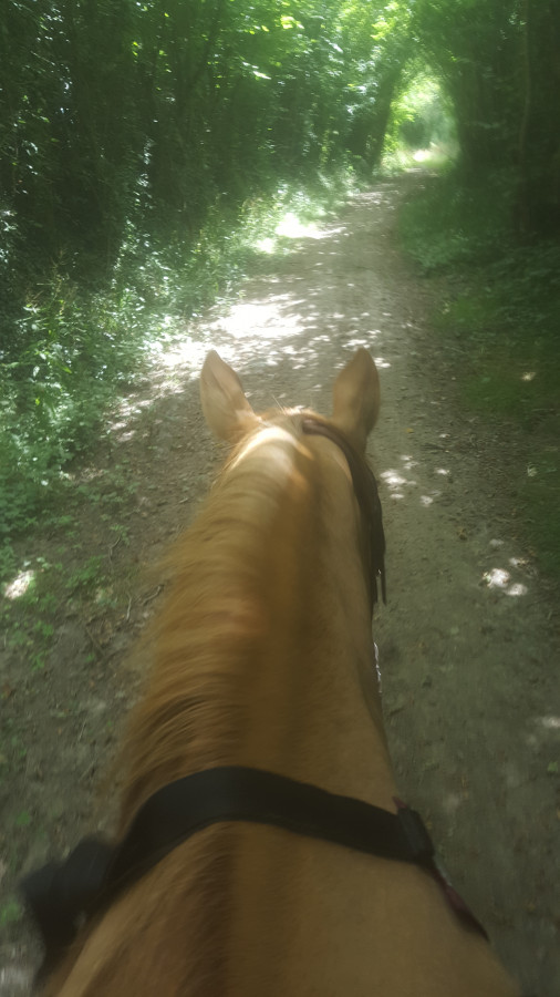 dimanche : 8.5km avec Darjeeling le poney que mon amie héberge et dont la proprio a accepté que je monte en balade avec ma copine (Myrtille n'est pas du tout sur le même rythme et l'emmener à chaque fois serait pénible...)