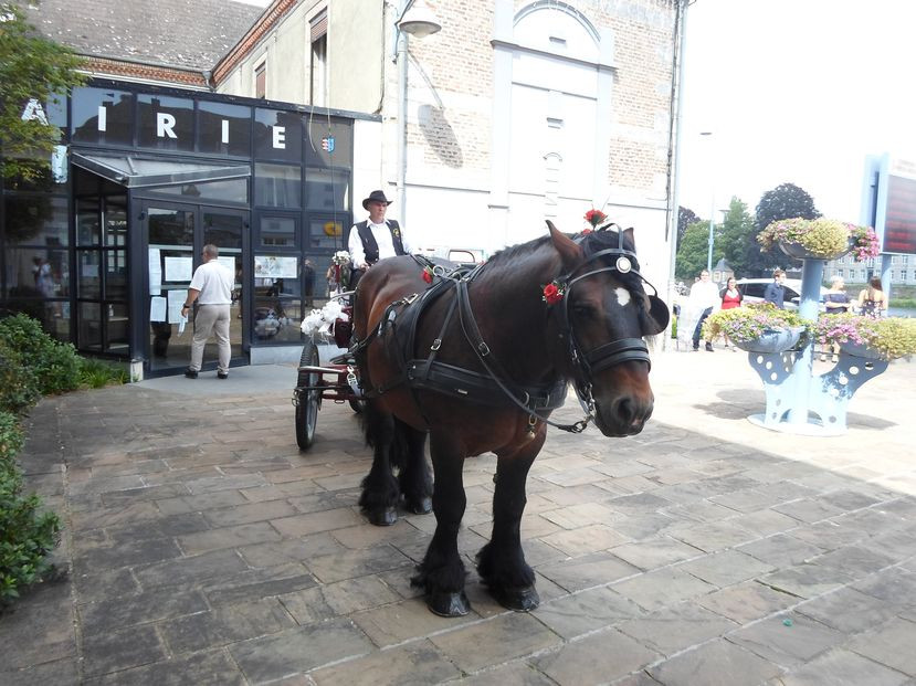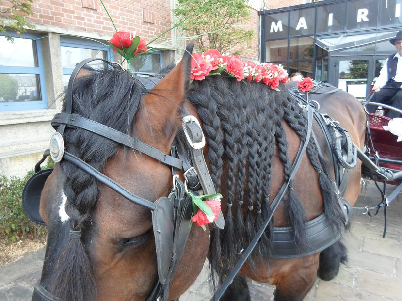 A la mairie je retrouve ma belle-soeur. elle ne comprenait pas que je m'inquiète. "vous l'avez attelé la semaine dernière, tout allait bien" OK mais entre atteler dans la campagne et traverser le centre-ville et se faire suivre par un cortège excité ce n'est pas exactement la même chose. Surtout que c'est sensé être le plus beau jour de la vie des mariés alors la moindre anicroche aurait tout fichu en l'air !
