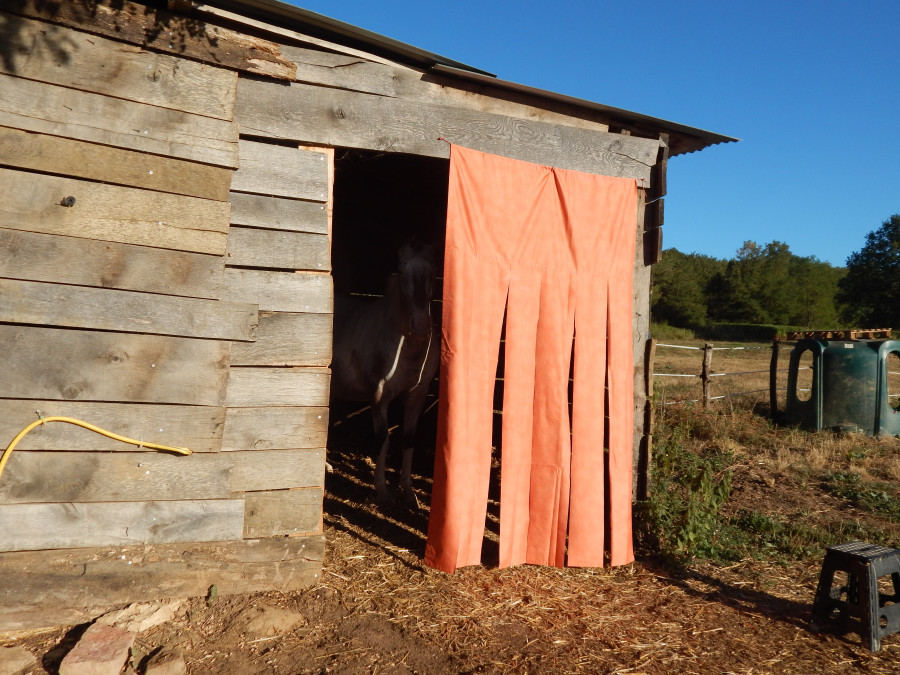 Je lui ai fabriqué un rideau pour qu'elle soit à l'ombre dans sa cabane, elle a l'air d'apprécier, même si elle se hâte quand faut passer dessous ^^