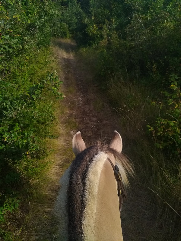 Bon par contre Glinski à bien compris qu'il avait un débutant sur le dos et à goûté a toutes les touffes d'herbes qu'on a croisées XD Sinon j'avais pas mis les chaussures a Praline et je suis contente car ça a été nickel !