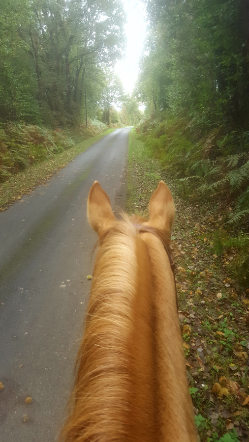 + 5 kilomètres en début de journée , avec une jument bien motivée ! Les chemins sont vraiment top et Or apprécie vraiment les balades , je lui laisse le choix des chemins ! Donc c'est elle qui nous choisit l'itinéraire de la balade