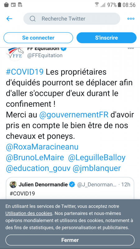 Sur FB, je vois que beaucoup sont allais voir leur chevaux en ce début de matinée suite à la pseudo annonce d'hier. Certains se sont faites contrôler > motif > personne a les décrets et les infos officiels et qu'il fallait attendre.