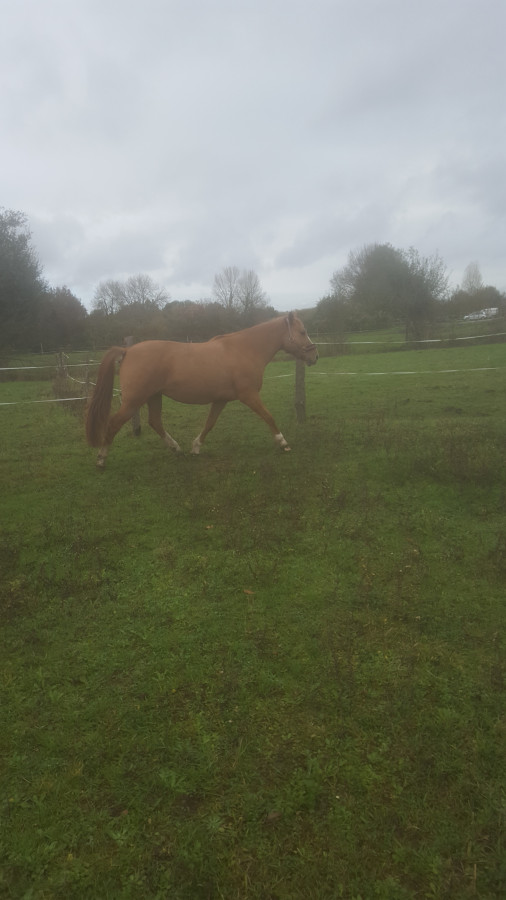 Puis après derrière au pas et trot. Je la sors aussi autour de son pré en longues rênes .