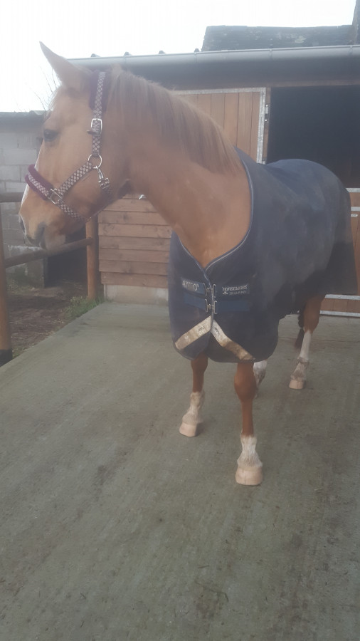 Puis une fois commençé a passer l'etrille ,j'ai bien fait les endroits où il y a la selle et les sangles ;puis hop je l'ai sellé quand même (au lieu de la prendre en LR avec la trotteuse monté )