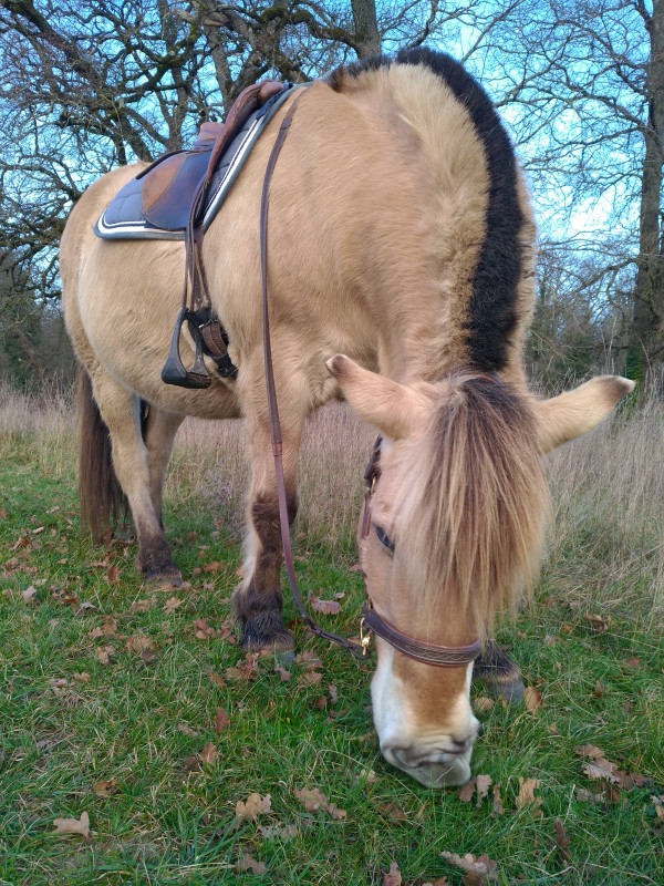 Et là il fait demi-tour au galop, j'étais rênes longues je ne m'y attendais pas ! Bon j'essaie de remonter sur mes rênes en me rééquilibrant, là il se met à faire des sauts de mouton en zigzag, dès que j'ai été "déposée" fin de la crise , je craignais qu'il traverse la route mais il m'a sagement attendue !