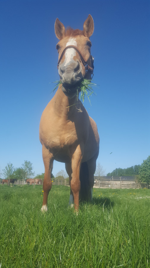 C'etait bien ; je n'ai pas donné de pomme après (c'etait dur pour moi car on a nos habitudes !! ) ,mais je me suis dit qu'elle peut être paisible sans avoir besoin de nourriture pour ça !! C'est notre challenge du confinement (ne vous inquietez pas pour elle ,elle en aura quand même de temps en temps des pommes ,mais là il y a deja l'herbe verte " !! J'ai juste donné une moitié pour l'algohm .