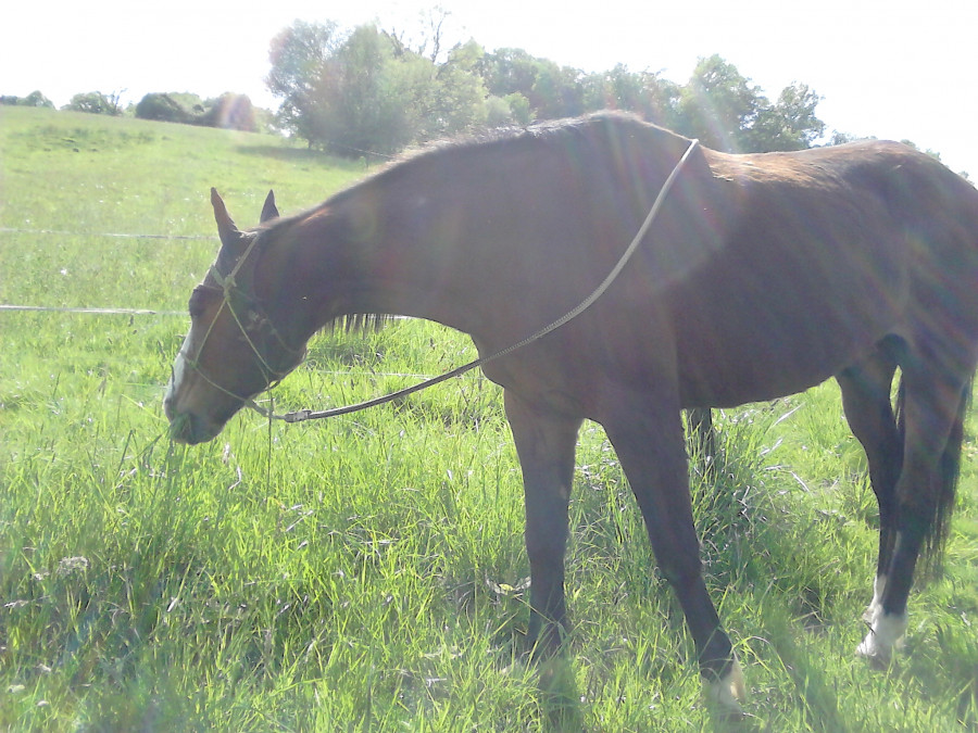 Hier après-midi j'ai donc pris Glinski en longe (et un peu a cru, j'avoue j'ai craqué) et j'ai fais le tour des prés puis je suis remonté a travers mon bois. Je l'ai laissé brouté la belle herbe qu'il y a autour des prés il été content et dans le bois en remontant je l'ai laissé libre pour qu'il me suive en liberté en choisissant son chemin et en grignotant quelques touffes d'herbes ça nous fait + 1,60kms au compteur.