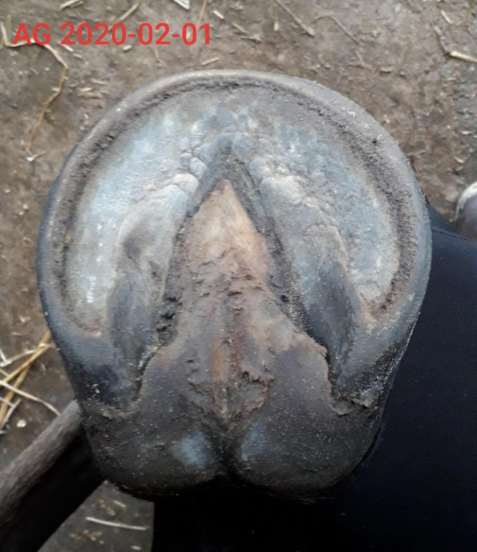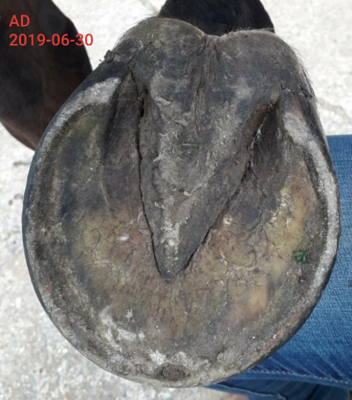 Cette dégradation est clairement due à un manque de mouvement, elle n'a pas assez marché, le box n'était pas assez propre, les pieds pas assez entretenus.