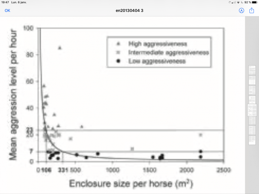 Je souhaite partager avec vous les études scientifiques sur le lien entre bien être des chevaux et superficie de leur habitat car il y a de nombreux post et de débats à ce propos.