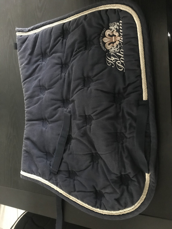 - tapis Tattini , couleur bleue , taille cheval , bon état général mais comporte quelques défaut (couture un peu usée mais légèrement , décoloration à l’intérieur avec la sueur)