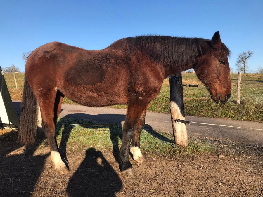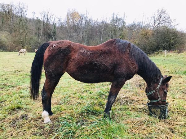 Suite à quelques semaines de semi-arrêt pour elle, elle a eu le temps de refaire du gras en peu de temps quand elle était dans le pré de saison. Maintenant, changement de pâture pour l'hiver. Morphologiquement elle est pas vilaine, elle a perdue un peu mais ça lui va bien. Enfaite, j'ai tellement plus l'habitude de la voir comme ceci, très vite je me fait des films, alors que non, elle perd son petit gras ^^ Côté musculature, on repassera :p