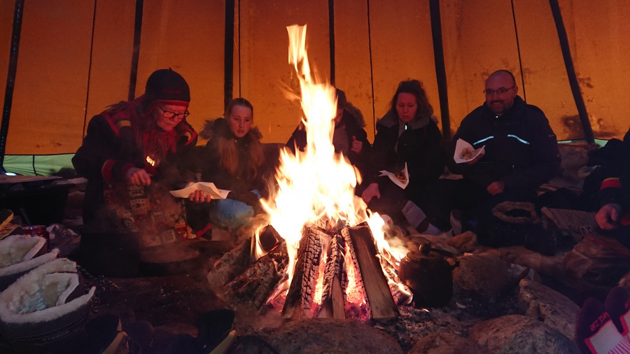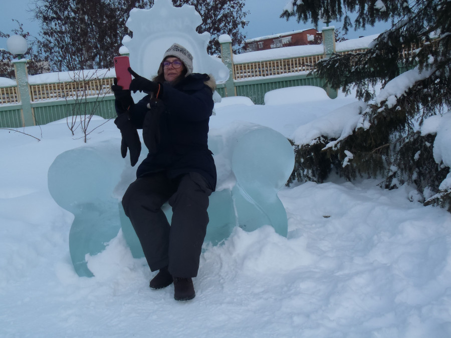 D'abord le voyage, petit exercice d'assouplissement sur cavaletti: les sauts de puces... Paris-Francfort, Francfort-Stockholm, Stockholm-Kiruna. Et pour moi, ça a vraiment été un exercice d'assouplissement: pour la petite histoire, je me suis cassée la jambe, et le jour du départ, j'avais le droit de m'appuyer sur ma jambe depuis 17 jours (autant vous dire que pour partir, j'ai mis les bouchées doubles en rééducation...).