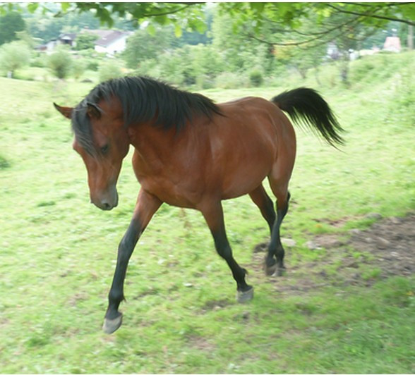En fait j'ai appris à monter à cheval lorsque mon cheval est entré dans ma vie, il avait 18 mois, était né lorsque sa mère était confiée (donc enregistré beni Sakr, d'un croisement "beni Sakr" mais c'était tout). Sa mère est décédée lorsqu'il avait 18 mois, à une époque où l'élevage n'était pas loin de disparaître. J'adorais sa mère, depuis toute petite (elle est née j'avais 10 ans), j'adorais son caractère, très princesse, mais hyper volontaire, très instinctive et aussi très dominante. Pour donner une idée, elle empêchait les autres juments d'approcher son étalon tant qu'elle-même n'avait pas été saillie. Une fois qu'elle se savait pleine, plus de soucis, il pouvait s'occuper des autres. E une fois qu'elle n'"tait plus là, je n'avais plus du tout envie d’entendre parler chevaux.