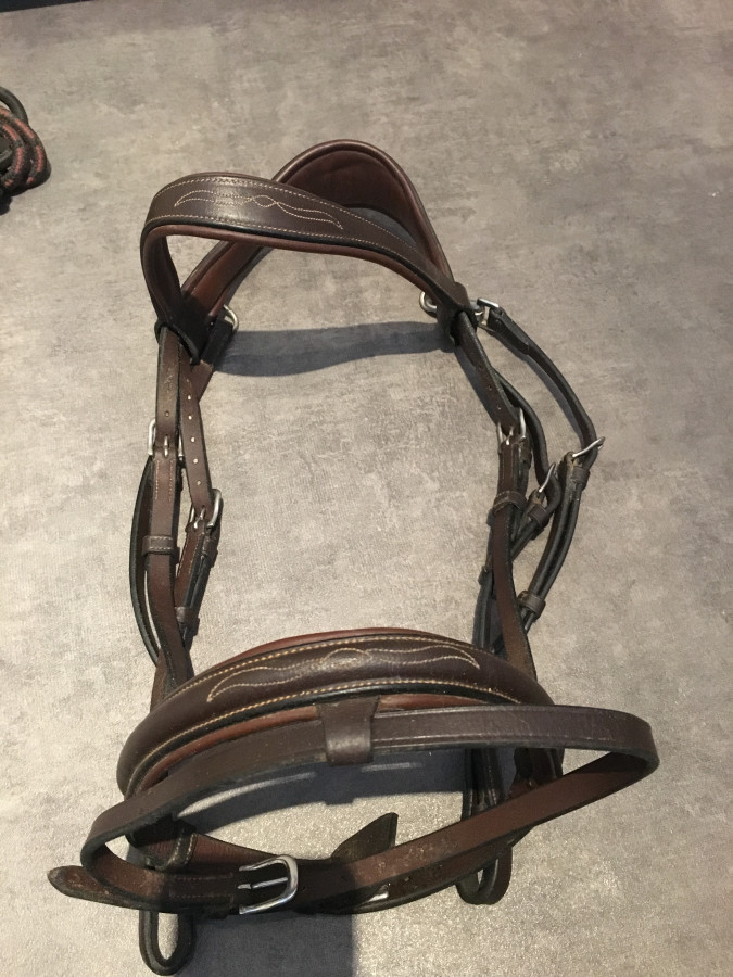 filet Dyon havanne muserolle combinée bouclerie argent taille cheval - bon état - 70 euros