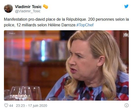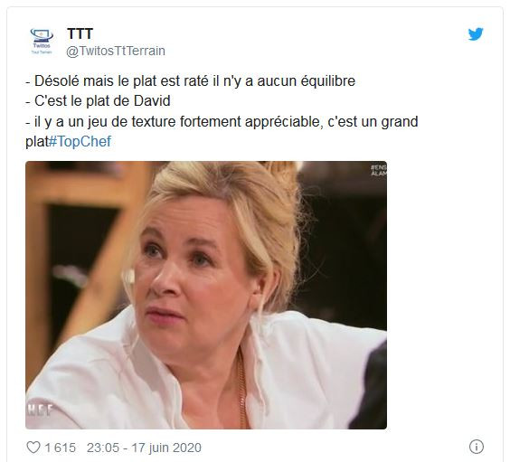 Edit : Je viens de voir que certain sont allés lyncher Daroze sur ses réseaux à cause de sa mauvaise foi plutôt flagrante hier faut l'avouer (surement expliquer par un esprit très compétition) lui souhaitant la fermeture de son resto, disant qu'elle devrait quitter top chef car elle a aucune classe... Je trouve ça hyper violent. Ok cette année elle est apparu comment vraiment antipathique la moitié du temps et encore le montage doit jouer dans cette impression, et ok on peut ne pas l’apprécier et trouver que son comportement était vraiment par fair play mais de là à lui souhaiter que son entreprise coule, l'insulter... Ca va beaucoup trop loin pour juste un concours.
